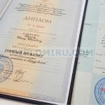 Диплом об окончании ВУЗа в 2012, 2013 годах. Нумерация состоит из 2-х букв и 5-ти цифр. В работе используем только настоящие бланки со всеми защитными элементами, заполняем как по стандартам Министерства образования России, так и по образцам документов, реально выданных тем или иным учебным заведением. На фото выше представлены заполненные корочки - точная копия оригинального диплома, выданного одним из Московских университетов.