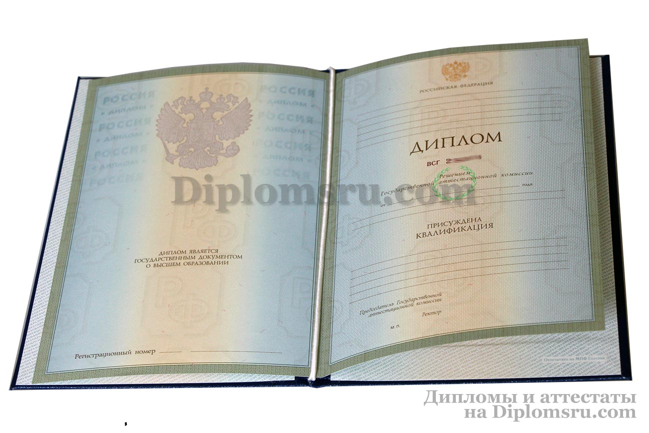 При изготовлении диплома специалиста используется подлинный государственный бланк, заполненный согласно действующим государственным требованиям и установленным стандартам конкретного высшего учебного заведения.